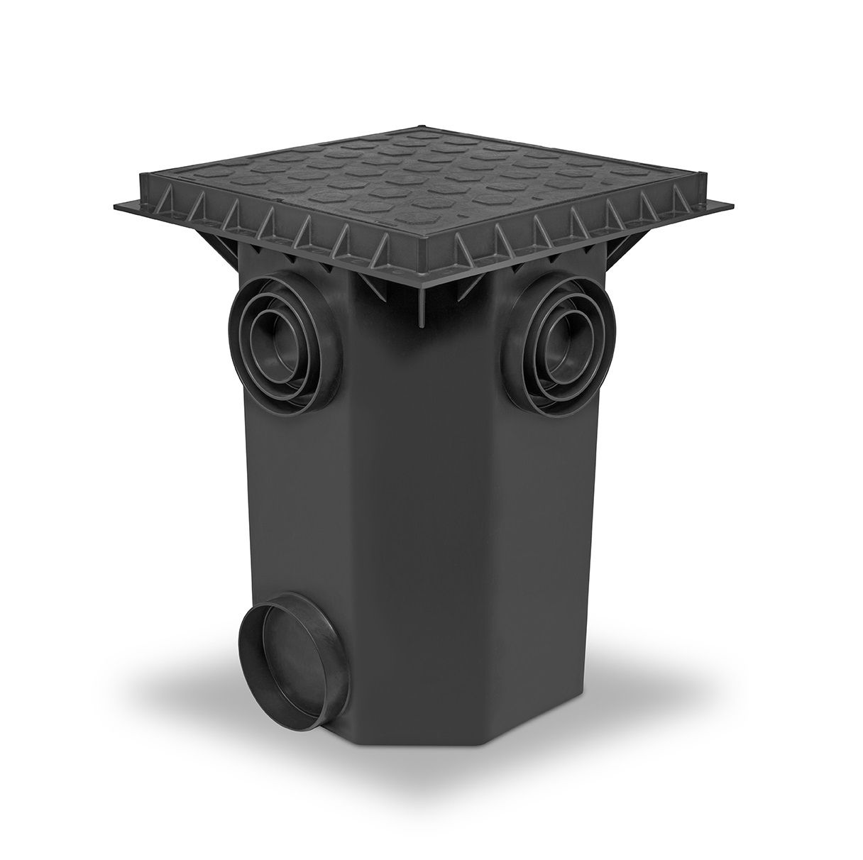 4 posições de entrada, ambas com encaixes para tubos de 100, 75 e 50mm e 1 posição de saída inferior para tubos de 100mm.